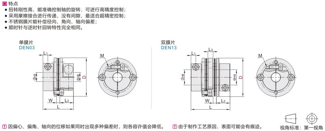 | DEN03 | 螺钉夹紧型 | 单膜片 | 铝合金 | 不锈钢 | 本色阳极氧化 | 内六角 圆柱头螺钉 |