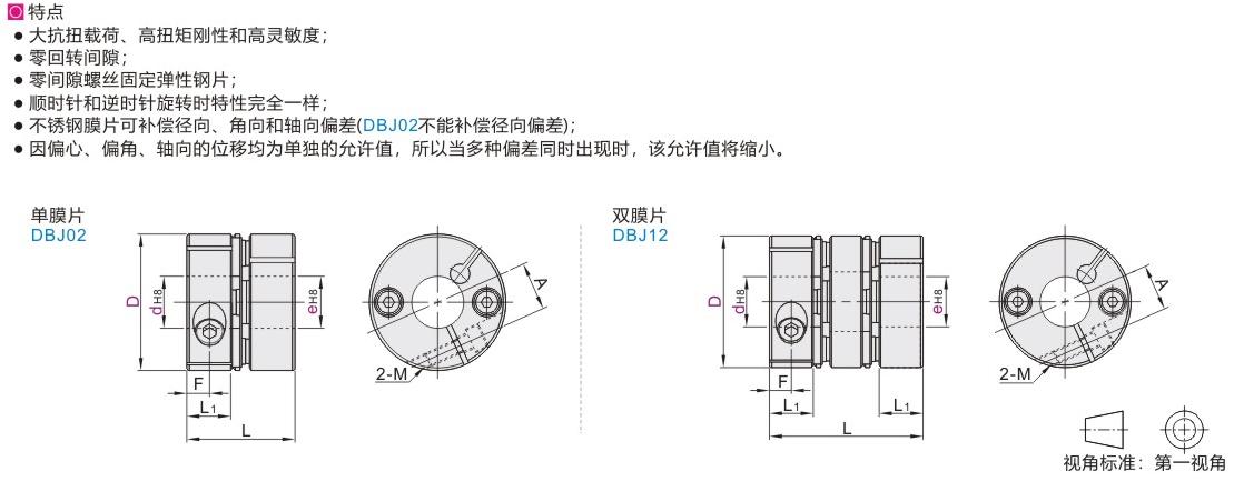 | DBJ02 | 螺钉夹紧型 | 单膜片 | 铝合金 | 不锈钢 | 本色阳极氧化 | 内六角圆柱头螺钉 |