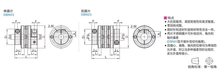 | DBN03 | 螺钉夹紧型 | 单膜片 | 铝合金 | 不锈钢 | 本色阳极氧化 | 内六角圆柱头螺钉 |