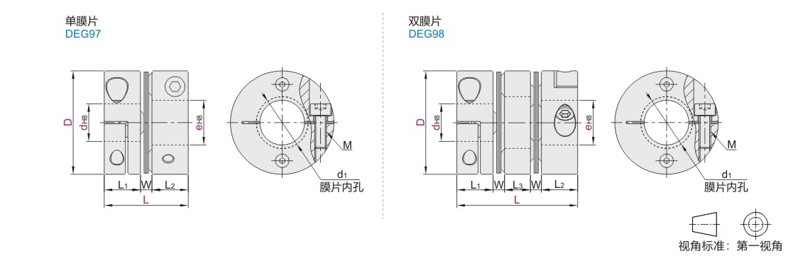 | DEG97 | 螺钉夹紧型 | 单膜片 | 铝合金 | 本色阳极氧化 | 内六角圆柱头螺钉 |