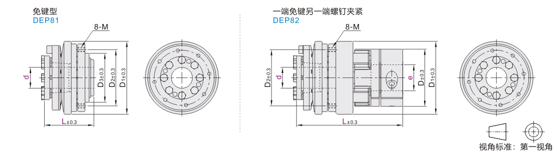 | DEP82 | 一端免键另一端螺钉夹紧 | ||||