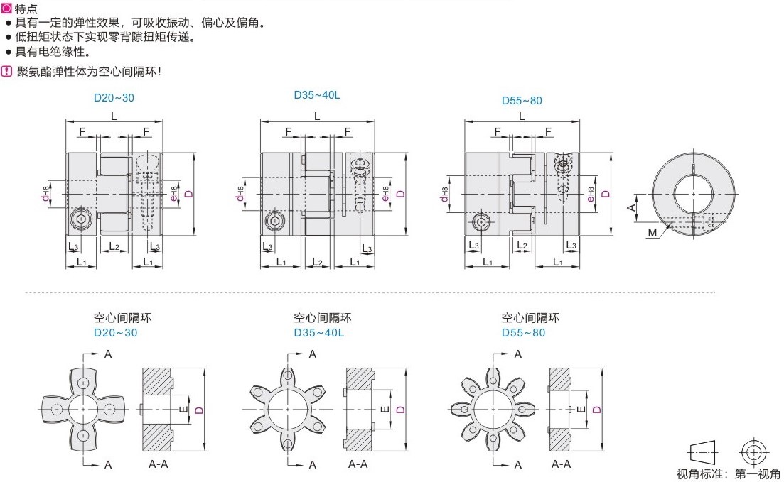| 型号 | L | L1 | L2 | L3 | F | A | 间隔环 E |