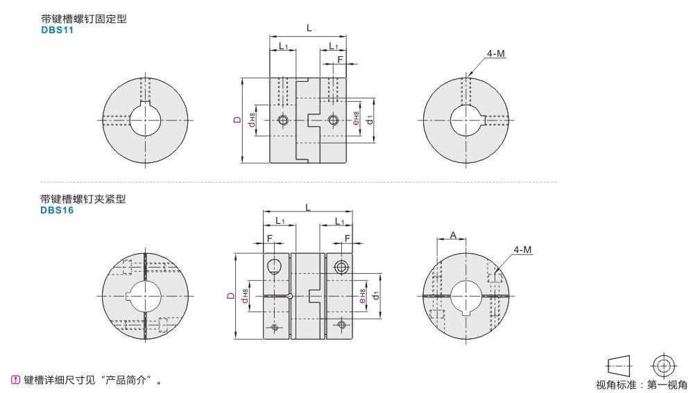 | DBS16 | 带键槽螺钉夹紧型 | 内六角圆柱头螺钉 | ||