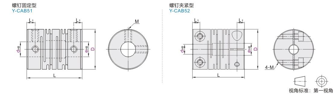 | Y-CAB52 | 螺钉夹紧型 | 内六角圆柱头螺钉 |
