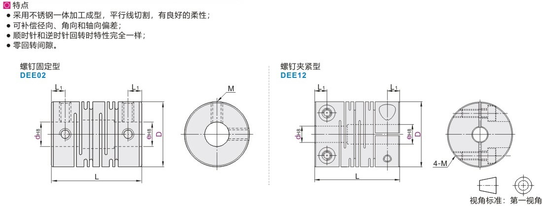 | DEE02 | 螺钉固定型 | 不锈钢 | — | 内六角紧定螺钉 |