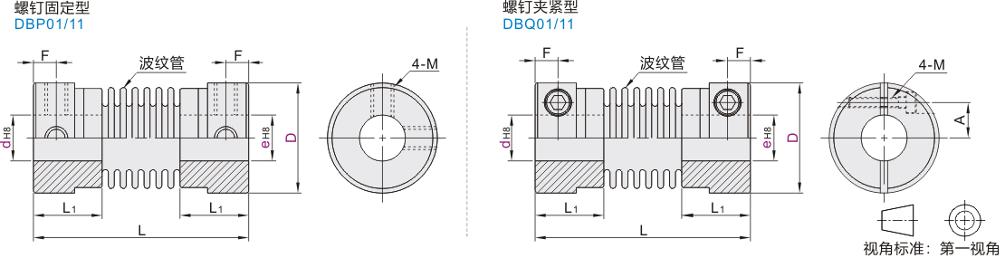 波纹管式联轴器 螺钉夹紧型/螺钉固定型 胶接式 不锈钢/铝合金