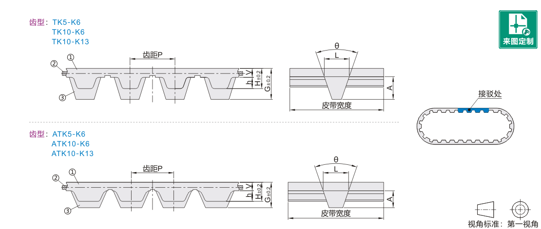 皮带长度公差为:0~2个齿。