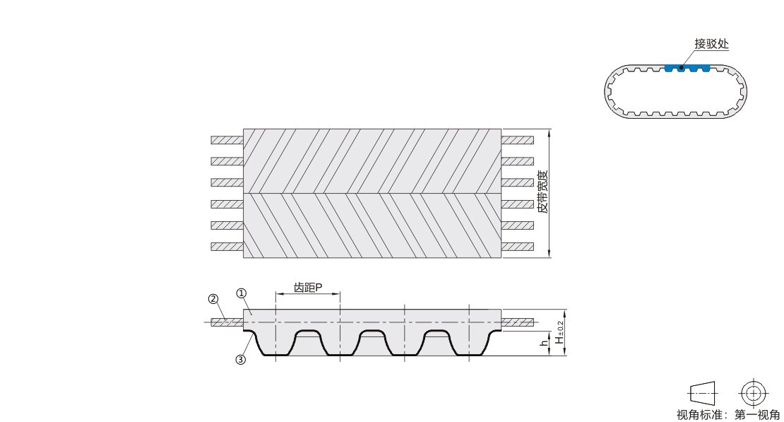 ECX71接驳型同步带,接驳处芯线未连接聚氨酯通过热熔连接,接驳处强度相对非接驳处强度减少50%,主要适用于输送或轻载传动;