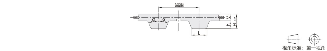 | 代码 | 齿形 | 齿距 | 2α | L | h | H | V | |||||
