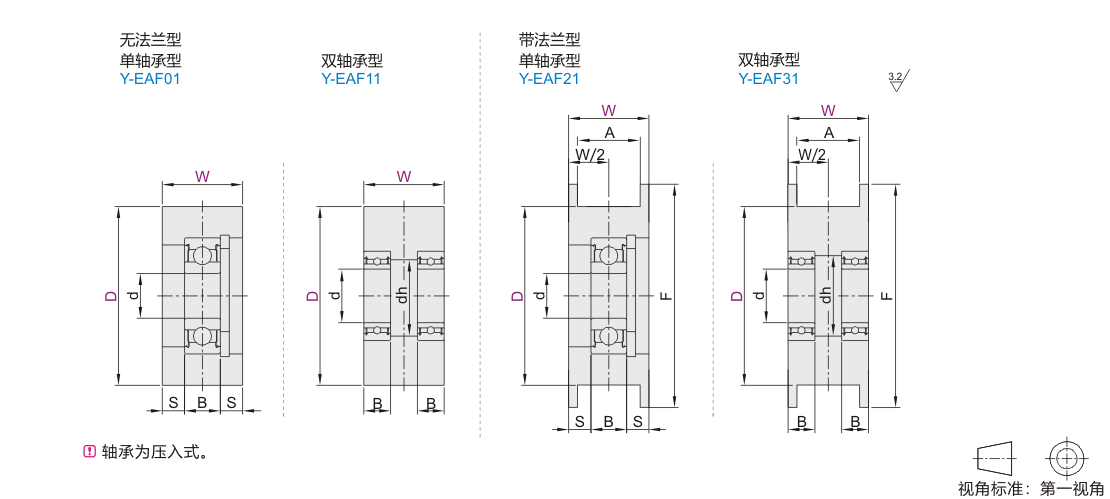 | Y-EAF21 | 带法兰型 | 单轴承型 | |||||