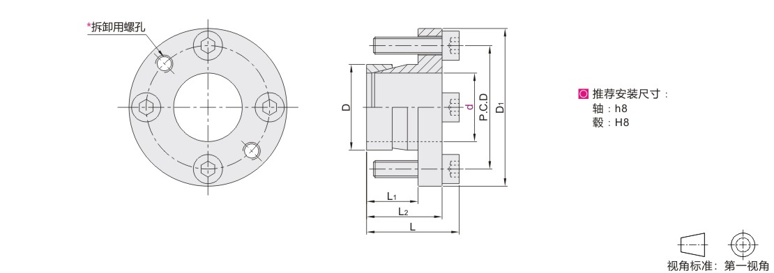 ※拆卸用螺孔的螺径与锁紧螺栓相同。