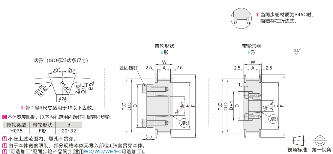 | ECD01 | H075 | 19.1 | 12.7 | 铝合金 | 铝合金 | S45C | 本色阳极氧化 | 发黑 | 见同步轮概要 | |
