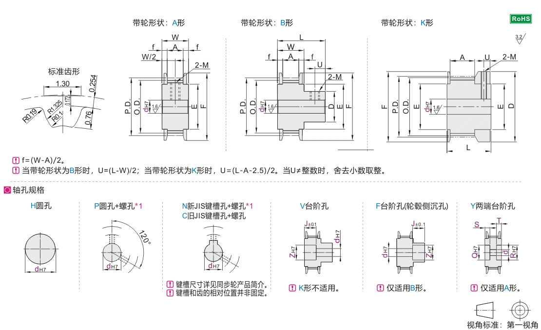 孔径6.35仅适用轴孔规格H、P、V、F。 孔径9不适用轴孔规格N。