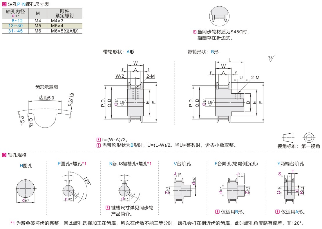 | 代码 | 齿数 | H | P | N | V | Y | H | P | N | V∙F | A形 | B形 | Q∙R | S∙T | A | W | L | ||||||||