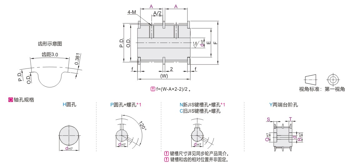 请注意选择齿面宽度A时,建议按配合的皮带宽度增加2~3mm。![]()