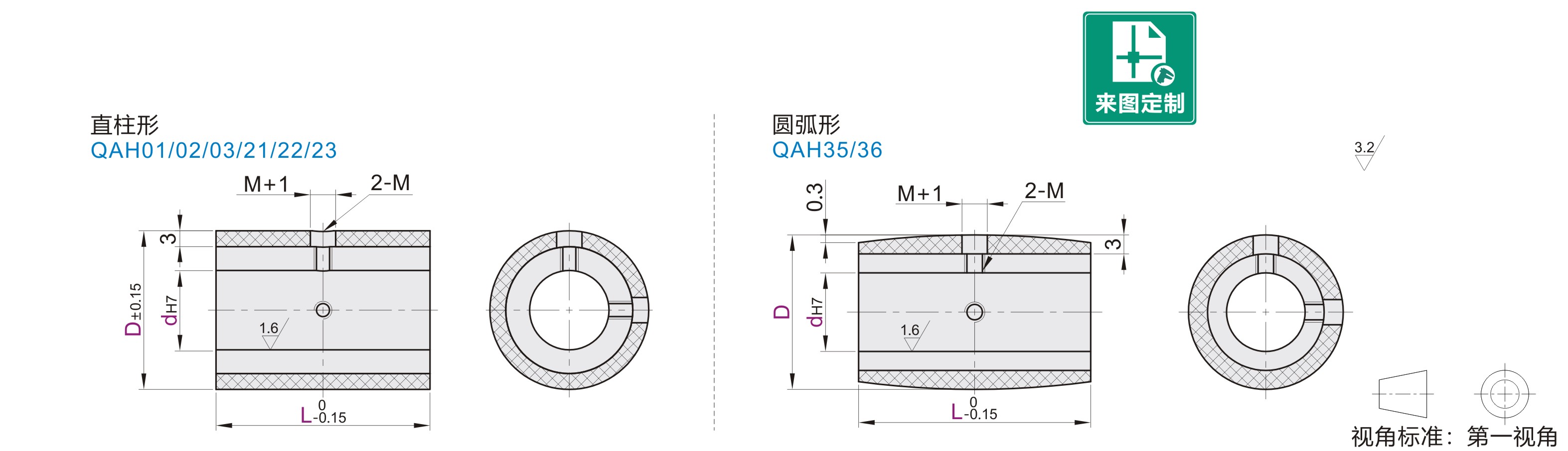 | QAH01 | 直柱形 | 带螺纹孔型 | SUS304 | 聚氨酯 (自然色) |
