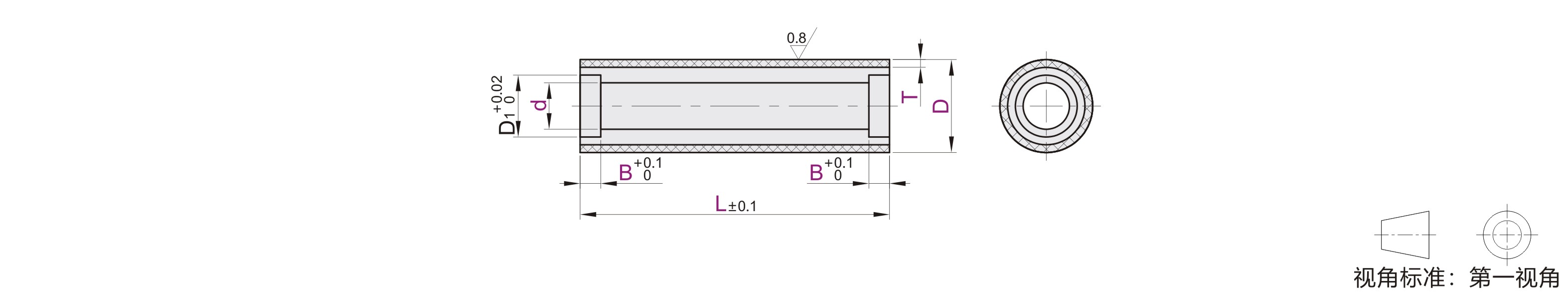 包胶单边厚度T(mm)