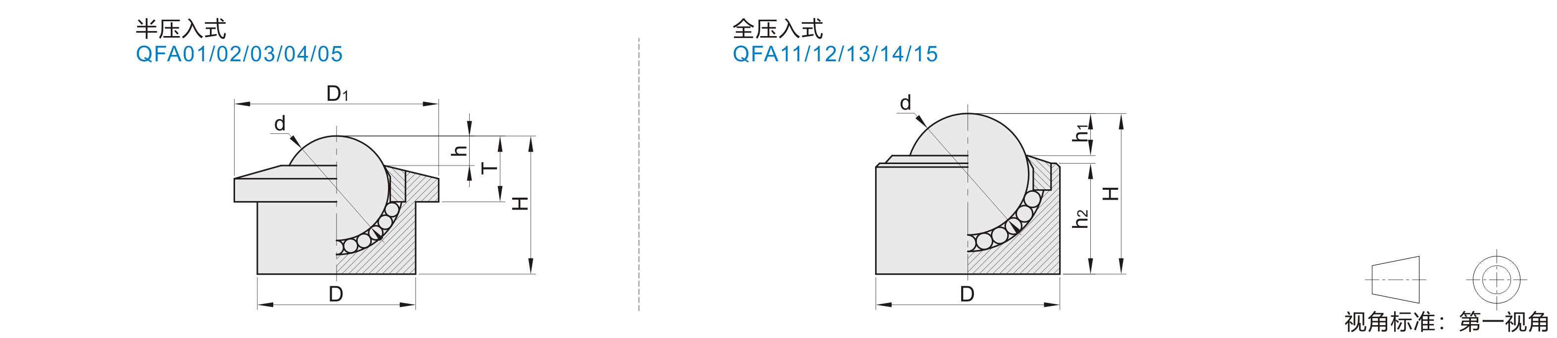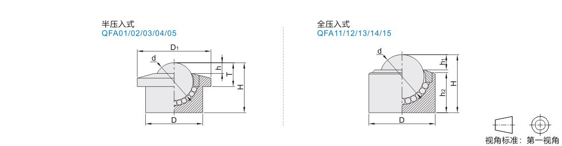 | QFA01 | 压入式 | 半压入式 | S45C | S45C | SUJ2 | SUJ2 | 镀镍 | — |