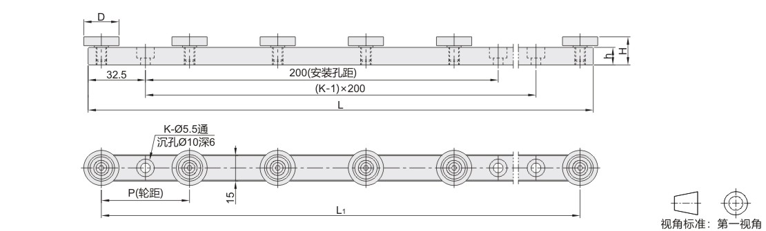 导轨式滚轮条 标准型 滚轮宽度5mm 主体喷砂阳极氧化处理