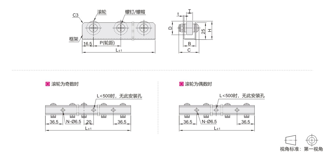 | 代码 | 类型 | 滚轮宽度 | 轮距 P |
