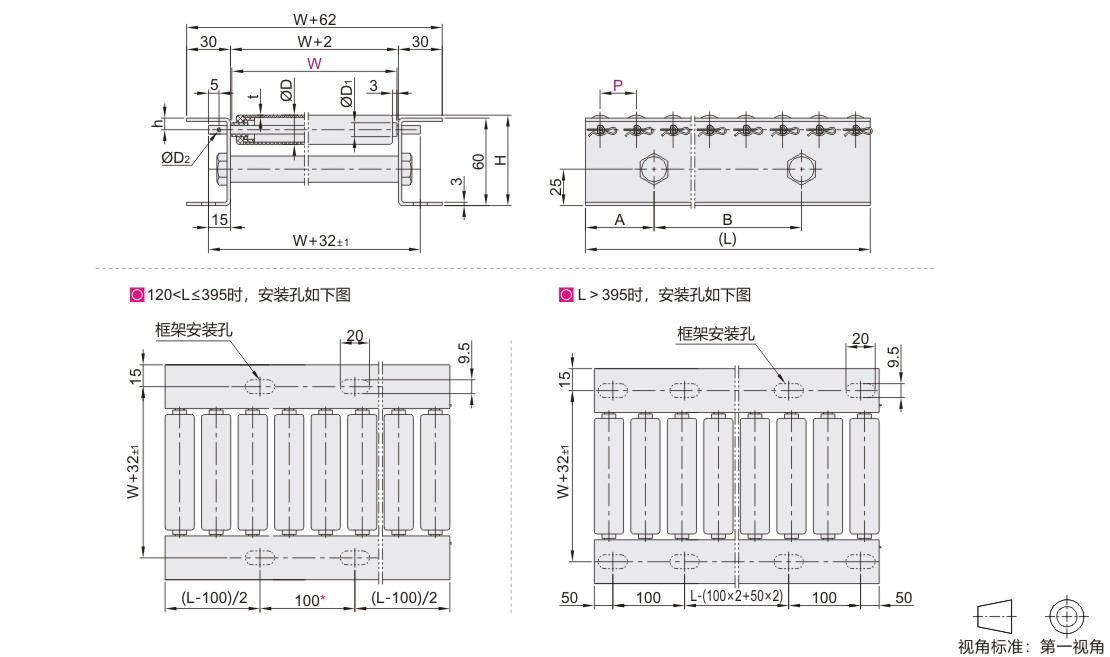 *当L=120、145时,两安装孔间距为50。