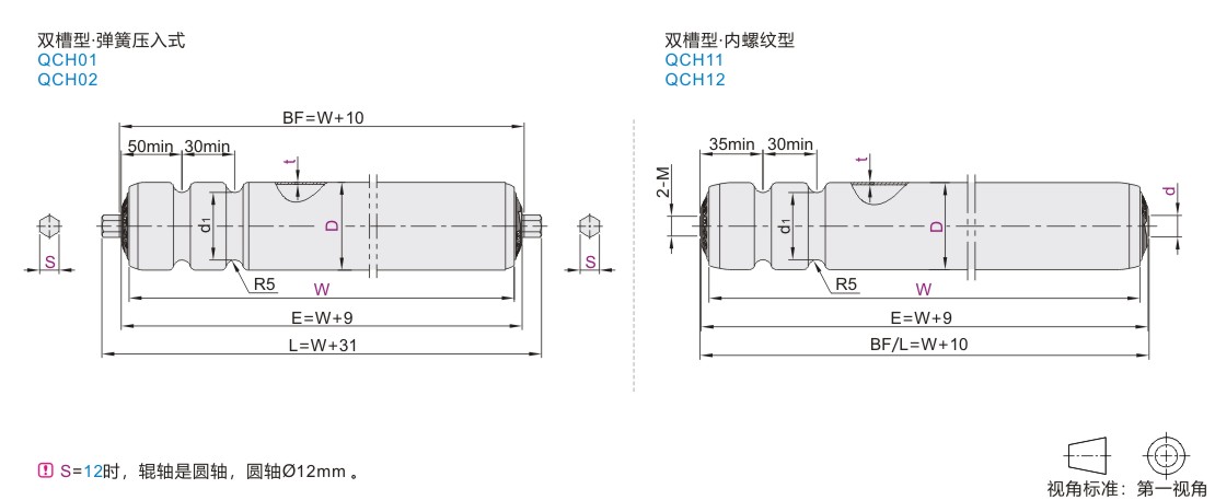 动力输送滚筒 双槽型 弹簧压入式 内螺纹型 低碳钢/不锈钢