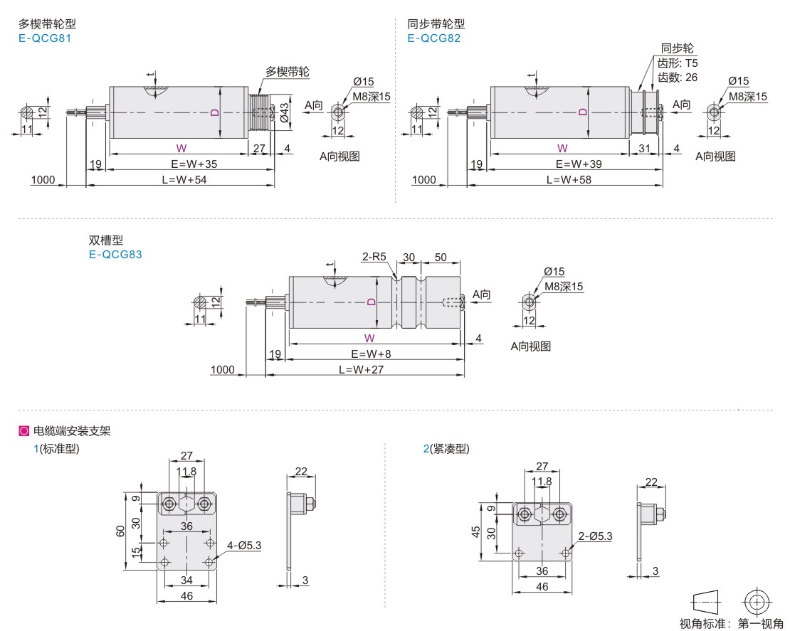 经济型直流型电动滚筒 多楔带轮型 同步带轮型 双槽型 内螺纹型 低碳钢/不锈钢