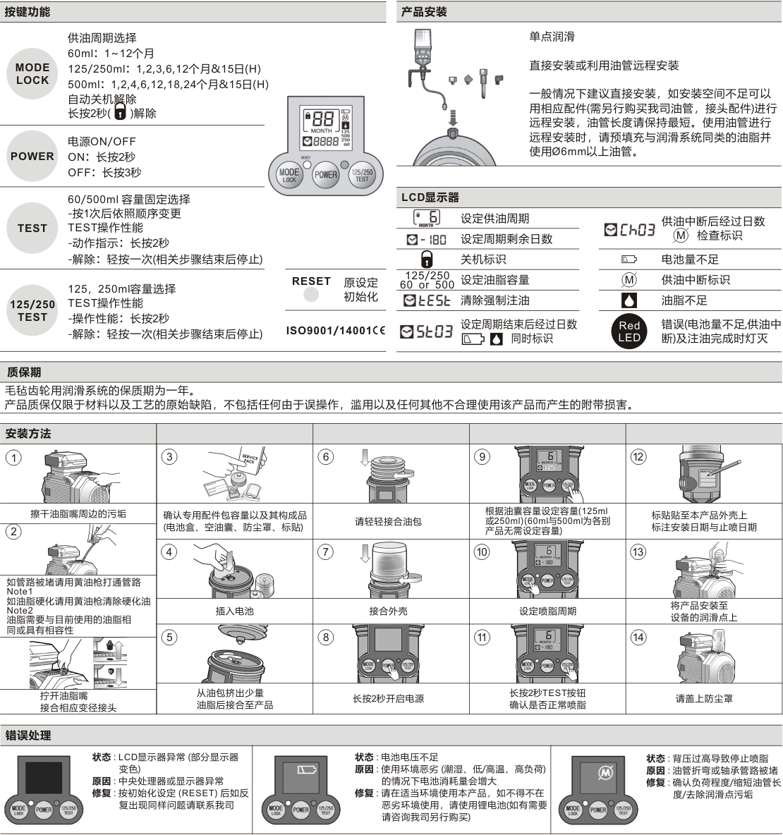 润滑系统 自动注油器 内置电池型