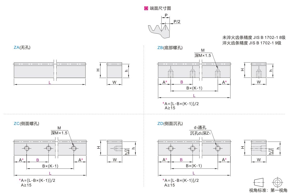 | 代码 | 类型 | 材质 | 齿面硬度 | 表面处理 |