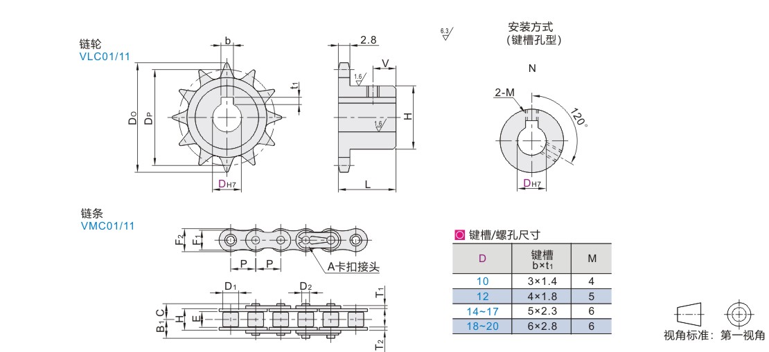 由于工艺和不同生产批次备库的原因,无法保证所有链轮键槽位置一致,因此当需要多个链轮同步使用的时候,您需要再下单时再型号后面备注工况,举例:VLD02-35-16-D14(键槽两两配对,链轮同步使用)