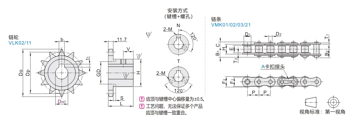 H值中带*号数据的链轮轮毂上有槽