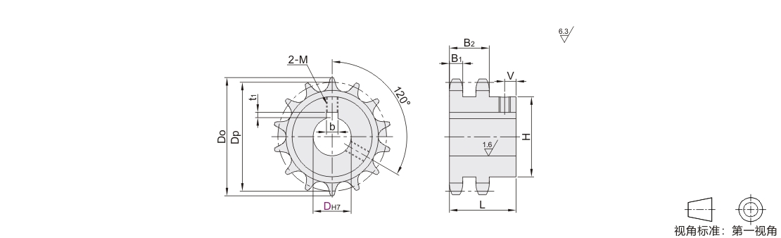 | 代码 | 系列 | 排数 | 齿数 | DH7 | Do | Dp | H | L | |||
