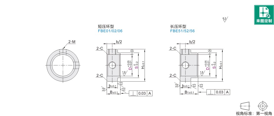 | FBE01 | FBE51 | 45 | S45C | 发黑 | 2个紧定螺钉 |
