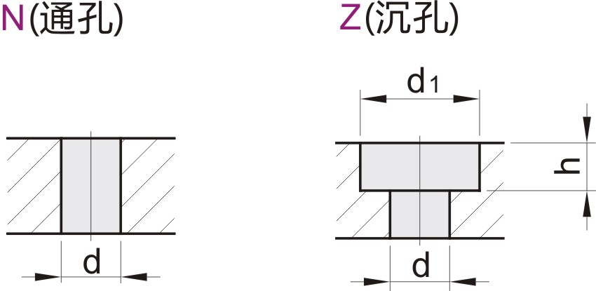 选择孔加工型时 ,请在N(通孔)、Z(沉孔)两种型式中任选其一。