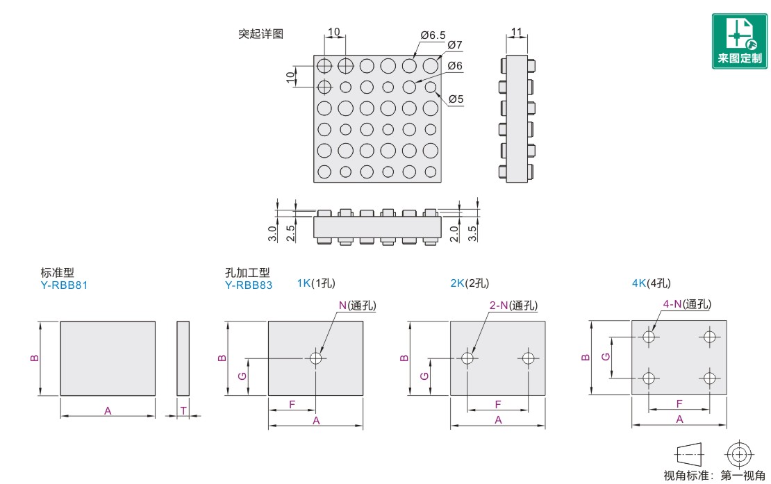 | 代码 | T | 孔类型 | A | B | F | G | N(孔径) | ||