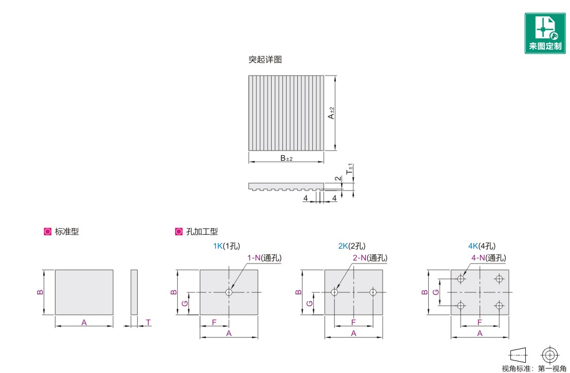 选定F、G尺寸时,请考虑孔边距和孔间距。