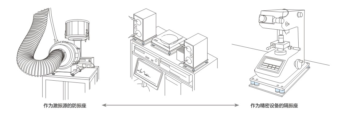 ● 可在三个轴方向进行防振及隔振,电机等产生的振动不仅仅在上下方向,