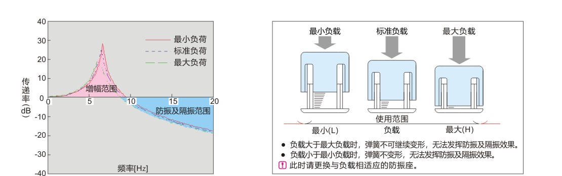 范围内使用时,可发挥防振及隔振效果,可目视确认作用的负载是否符合