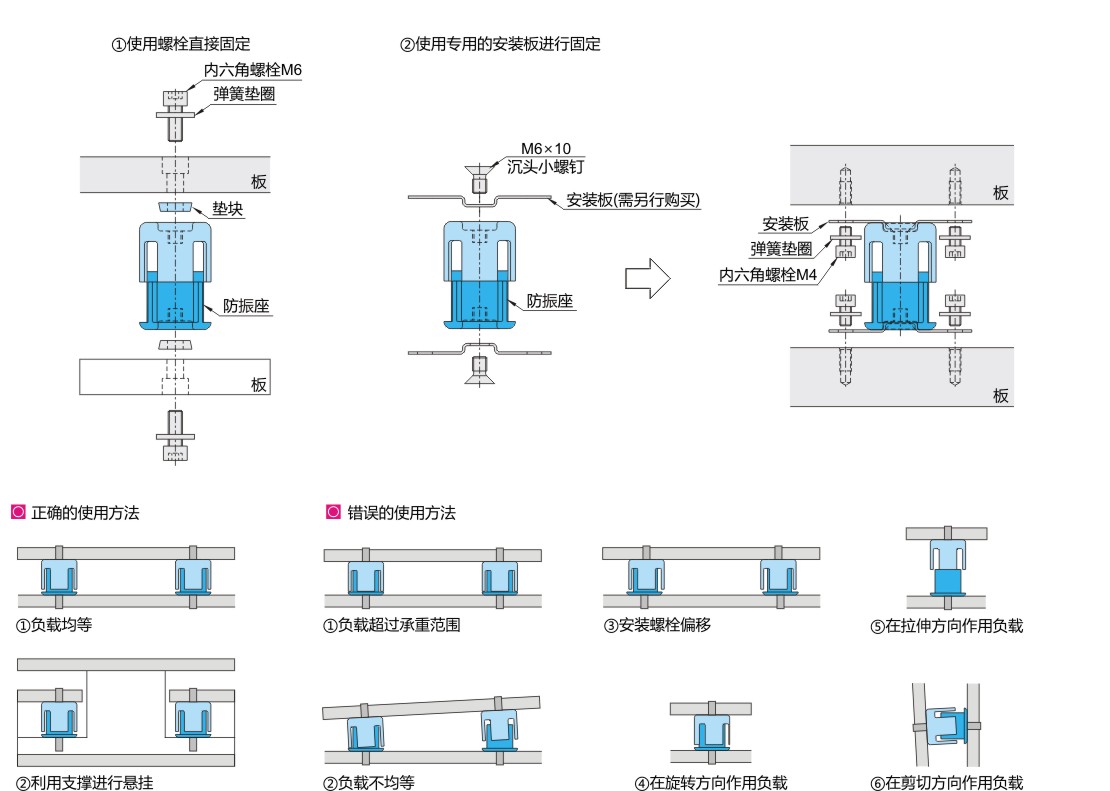 ● 仅当作用垂直方向的负载时 ,可使用防振座。
