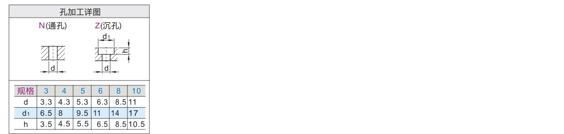 选择孔加工型时,请在N(通孔)、Z(沉孔)二种型式中任选其一。