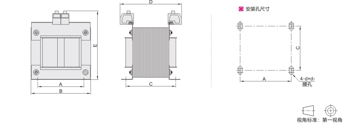 | 型号 | 容量(VA) | B | D | E | A | C | 安装孔径 | 重量 (KG) |
