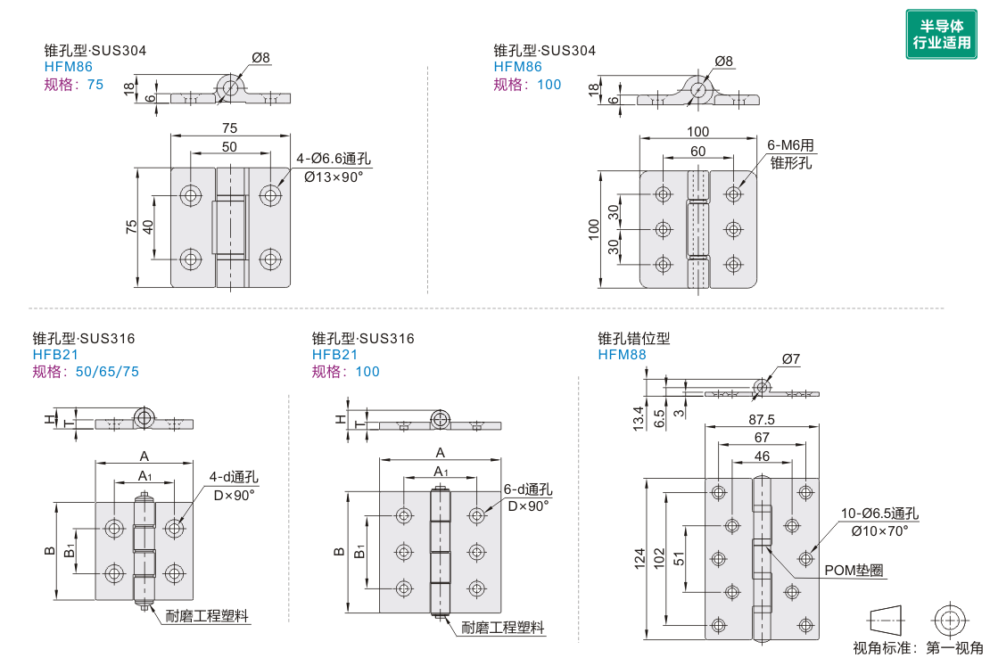 无尘蝶形铰链 平型 重载衬套防尘型 锥孔型/锥孔错位型 镜面抛光