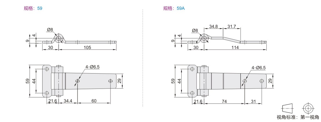 不锈钢蝶形铰链 T型 长板型 圆孔型 偏置型 SUS304 镜面抛光