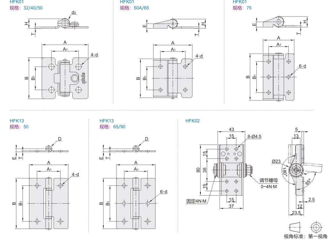 | HFK01 | 阻尼型 | 圆孔型 | 任意角度定位型 | SUS304 | 滚磨抛光 |