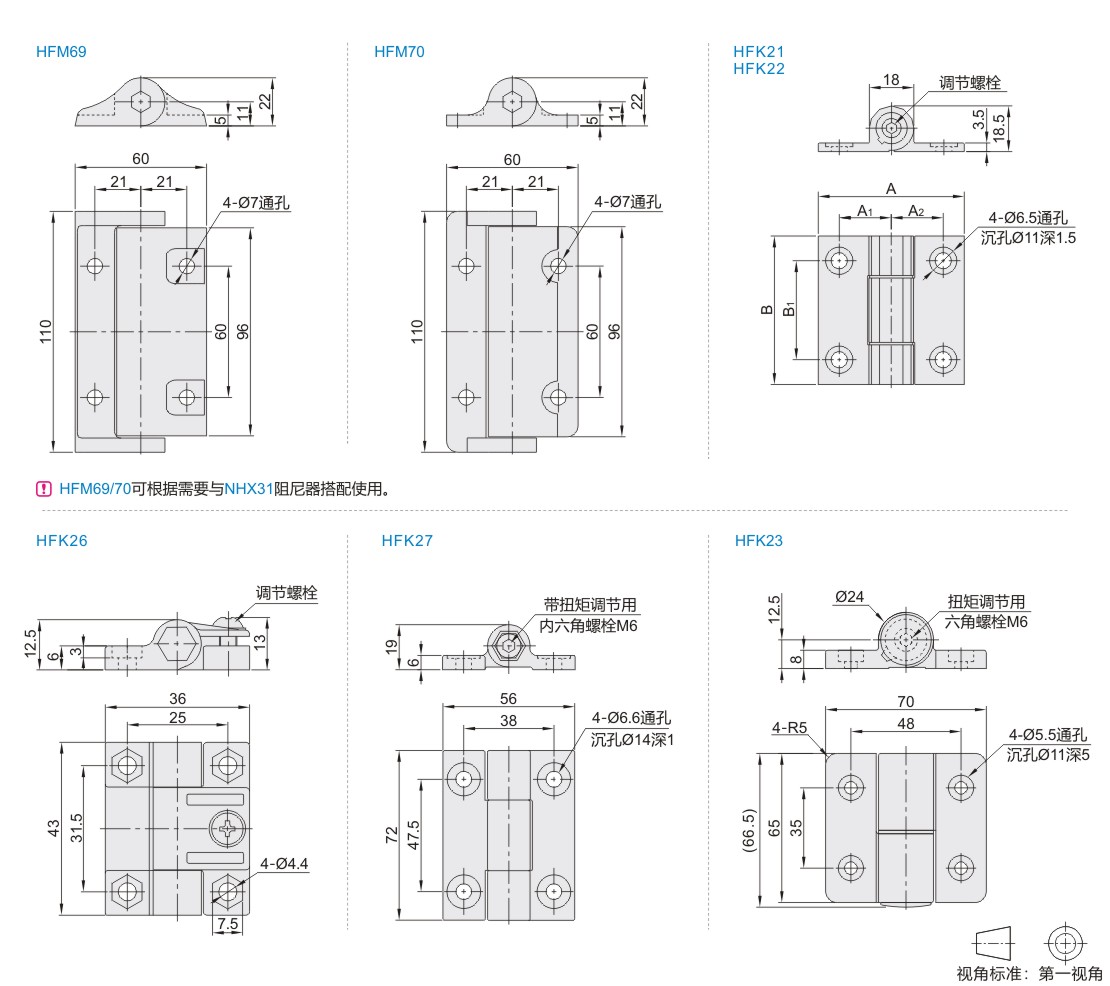 | HFM69 | 可调阻尼型 | 圆孔型 | 任意角度定位型 | PP | 黑色 |