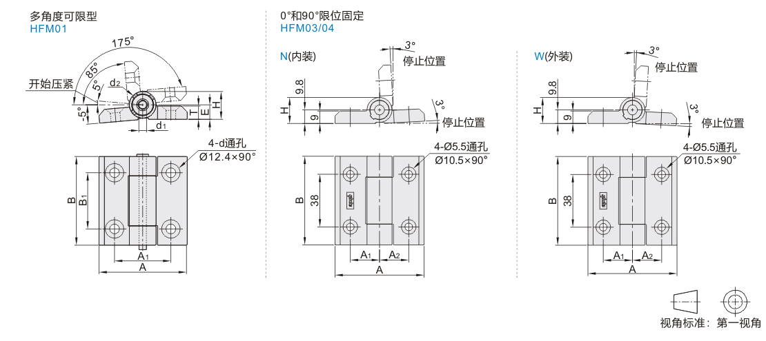 | HFM01 | 金属型 | 锥孔型 | 多角度可限型 | ZDC | 电泳(黑色) |