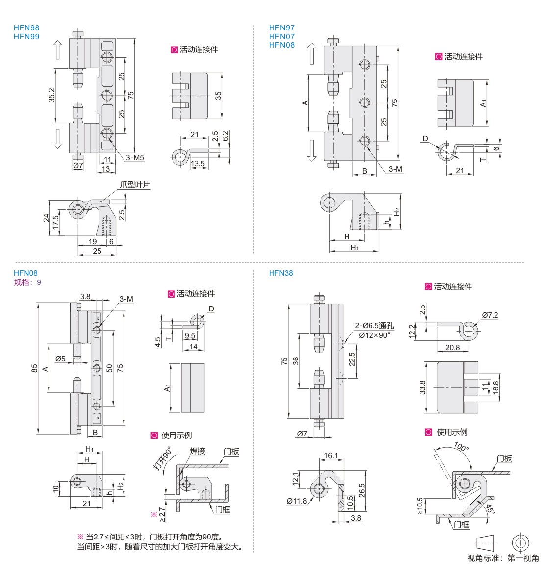 | HFN99 | 快速拆卸型 | 螺孔+焊接型 | 内装门 | SUS304 | 拉丝 |