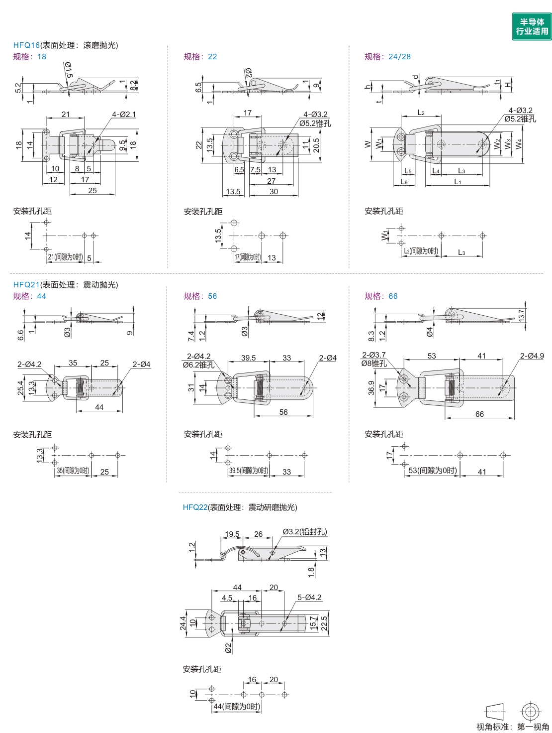 | HFQ16 | 轻载型 | 扁嘴型 | SUS304 | 滚磨抛光 | 是 |