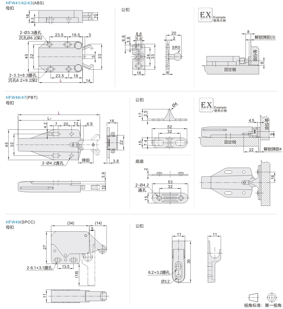 | HFW41 | 较紧型 | 外装型 | ABS | ABS | — | 黑色 |