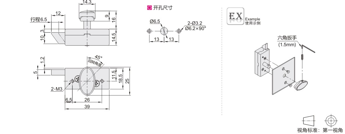 旋钮式方形插销 中程距离 带弹簧装置 旋钮解锁